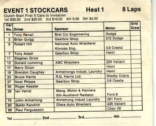 and Ltd Saloon combo of 58 cars that graced Waikaraka's printed program